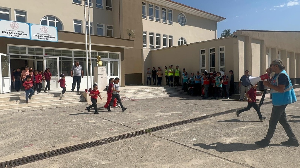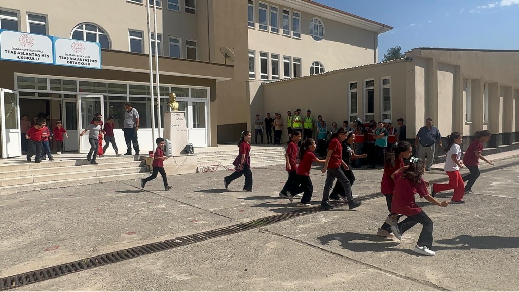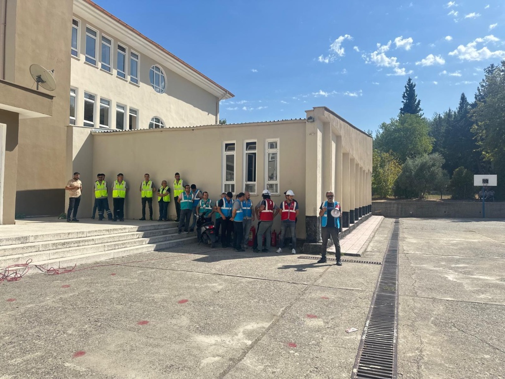 Teaş Aslantaş Hes İlkokulu-Ortaokulumuzda senaryo gereği çıkan yangının ardından öğrencilerin yangın merdiveninden bina dışına tahliyeleri yapıldı.